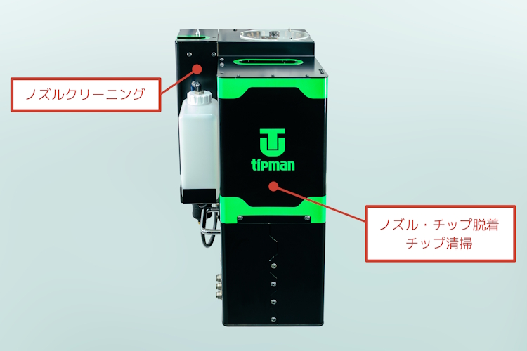 CTC-002がノズルクリーニング・チップの交換を自動で完了。
