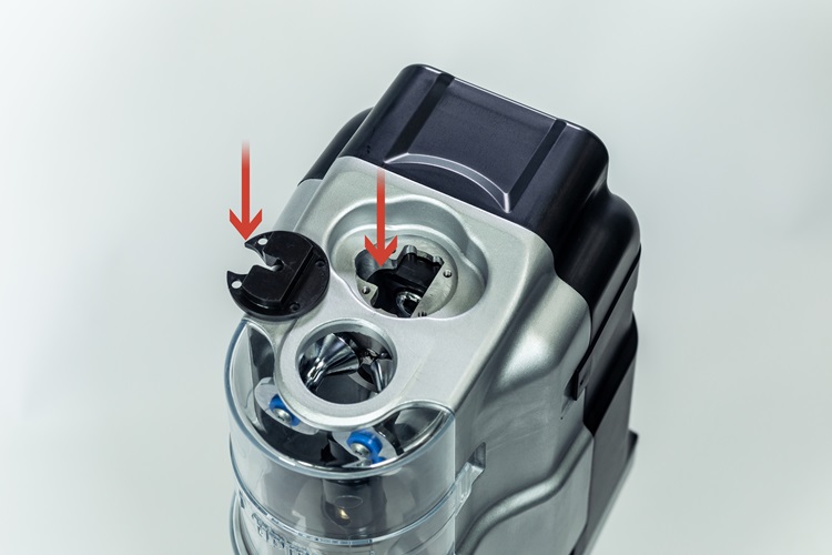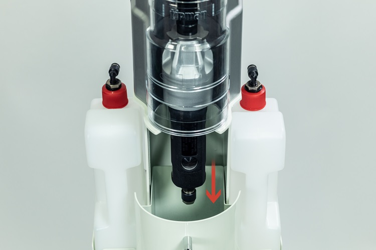 Lower down and insert the torch again to the same insertion slot to atomize anti-spatter liquid to the inside of nozzle. The misty liquid is well applied there.