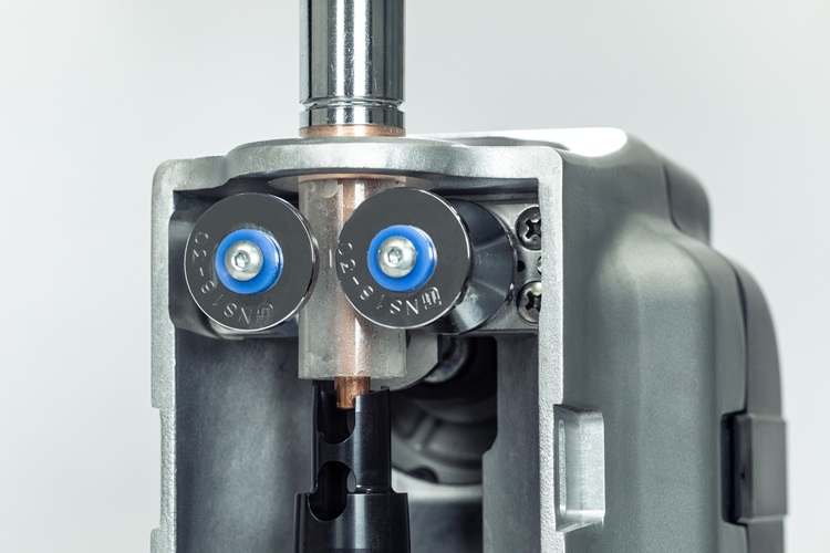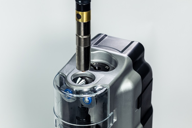 Insert the torch to the insertion slot of nozzle cleaner. Pulverize and remove spatter sticking on the inside of nozzle with the reamer.