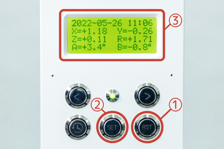1. Press “RST” to reset the alignment values